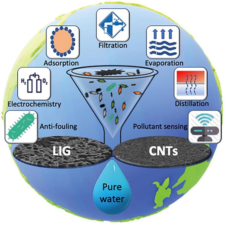 During his research, Dr. Thamaraiselvan has focused on many types of carbon materials, and he is currently generating laser-induced graphene (LIG) in Ben-Gurion’s laboratories. This material is easily generated using a 10.6 µm CO2 commercial laser cutting system by lasing various polymeric materials, such as those found in water treatment membranes. This method has many advantages in terms of material properties, production cost, and fabrication safety issues. For example, the LIG fabrication process is fast and scalable and can pattern substrates without the need for chemical reagents since laser irradiation is the key to transformation. The method generates unique sponge-like porous conformal carbon on surfaces, and despite consisting of graphene, is quite different than a graphene sheet prepared by chemical vapor deposition (CVD), for example.