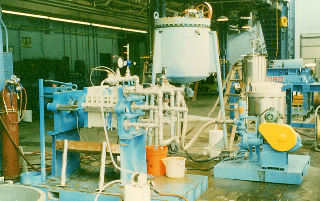 Generally, washing is done to remove impurities from a valuable solid product1, but it can also be used to flush out a valuable liquid product from a waste solid product. Cake washing has been practiced in a variety of devices from vacuum drums and belt filters2, to basket centrifuges and candle filters3, to rotary pressure filters4, to automatic pressure filters5, and to filter presses (including all three types: plate and frame, recessed chamber, and membrane recessed chamber6-8). Significant work has been done on modeling1, as well as on the non-ideal aspects of the cake washing process9. Even laboratory devices have been developed to simulate the cake washing process.8