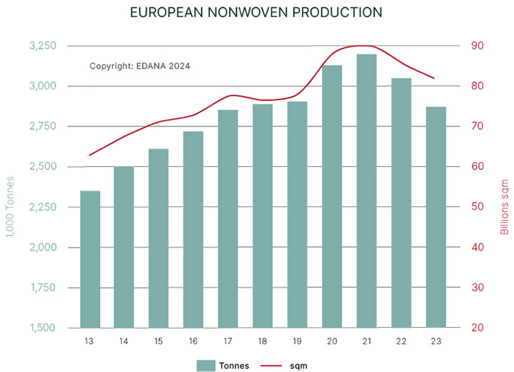 European Nonwovens Production Decreased by 5.7% in 2023