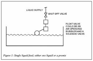Figure 1 shows a single float valve for one liquid. It can be for water only where oil is added independently, or a premix of both fluids.