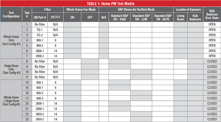 A comprehensive study was conducted to understand: (1) the relationship between filter efficiency and CADR (clean air delivery rate) and reduction of the PM (particulate matter) concentration in a house with a forced-air residential HVAC (Heating Ventilation air-Conditioning and Refrigeration) system; and (2) the interaction between the event room, where the PM is generated, and other rooms based on different filters and RAP (room air purifier) configurations. The study was conducted at the Emerson Helix Innovation Center in Dayton, Ohio, using its one-of-a-kind 2,000 square foot, fully functional Residential Home. The home is housed inside an environmental chamber, enabling accurate simulation of diverse indoor and outdoor climate conditions where experiments can be conducted with an unprecedented level of precision and consistency, at a speed unachievable in a real-world setting.