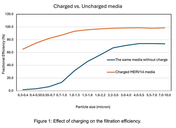 - Enhanced submicron particle capture – Electrostatic forces are particularly effective for particles below 1 micron, as illustrated in Figure 1.