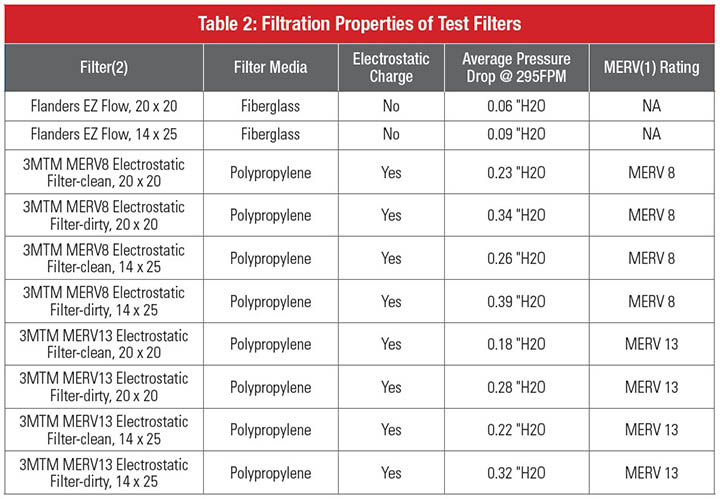 This study concluded that: (1) high-efficiency filters had a negligible impact on HVAC energy consumption when compared to fiberglass filters; (2) high-efficiency filters maintained the same level of energy consumption throughout the designed service life; and (3) high-efficiency filters do not necessarily have higher pressure drop versus lower-efficiency filters, because the filter pressure drop depends mostly on the filter media and filter design, not necessarily on the filter efficiency.