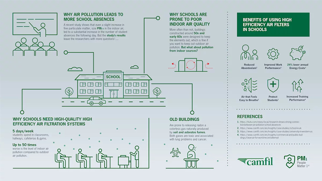 The following infographic produced by Camfil highlights the potential benefits of high-efficiency filtration in schools.