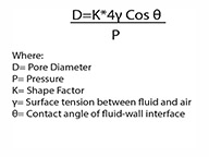 For some time now, both Bubble Point Tests and Capillary Flow Porometry have been used to assess the through pores present in filtration media. These techniques are based on a well-known relationship between a size of a pore and the associated pressure drop necessary to evacuate a wetted fluid from that pore. The Washburn Equation (based on the Young-Laplace Equation) defines the relationship between this pressure drop and the size of the capillary, or pore, as follows: