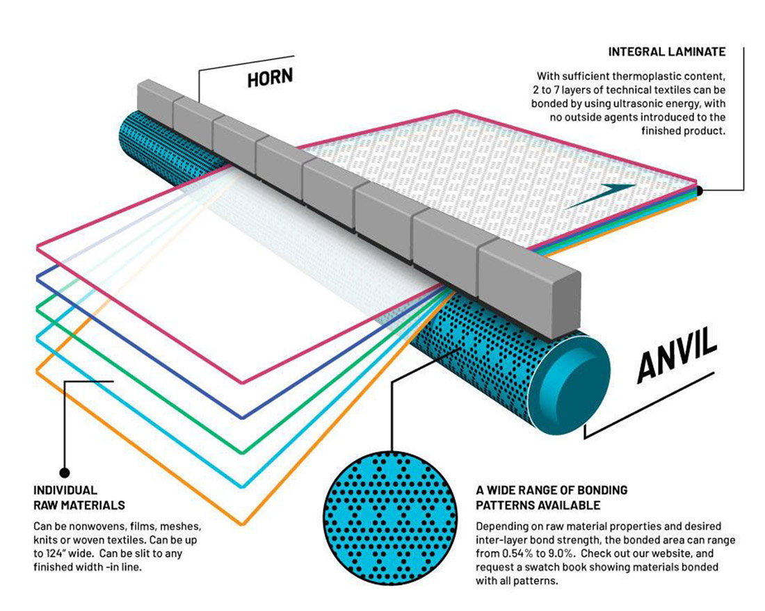 Ultrasonic technology is among the preferred assembly methods for facemasks and other forms of PPE. The technology utilizes high-frequency sound waves that cause heating and plasticization of the nonwoven materials employed for PPE, creating high-quality, regulatory-compliant bonds that eliminate leaking issues.