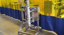 For sterilization, the stacked disc cartridge was steamed for 20 minutes with filtered saturated steam at 230 °F (110 °C). The steam was supplied in the flow direction at an overpressure of 7.3 psi (0.5 bar). The steam supply was then closed and all valves on the filter housing were opened. The stacked disc cartridge was cooled down with cold water for five minutes.