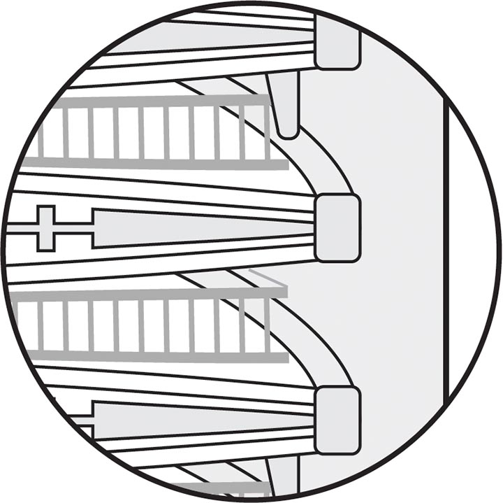 Figure 1 shows the principle of filtration in a stacked disc cartridge. The flow is from the outside to the inside. The wine flows through the depth filter sheets and is filtered. It then enters the filtrate channel inside the cartridge via the drainage plates. The filtered wine flows off from here.
